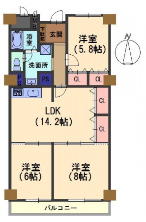 専有面積71平米超!南向きバルコニーで陽当り良好・通風良好!