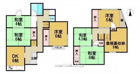 階数 区分 広さ 1F DK 6.0帖 1F 洋 6.0帖 1F 和 6.0帖 1F 和 4.0帖 2F 洋 6.0帖 2F 和 6.0帖 2F 和 4.5帖 2F S 9.0帖 - 駐車場