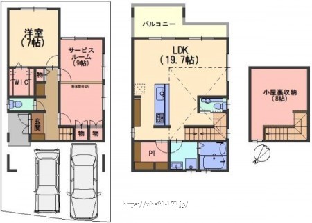 階数 区分 広さ 1F S 9.0帖 1F 洋 7.0帖 2F LDK 19.9帖 - 駐車場