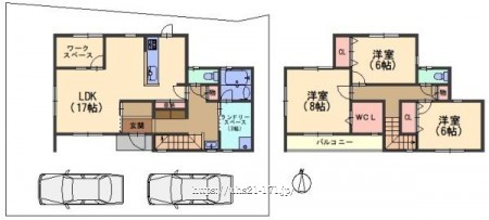 階数 区分 広さ 1F LDK 17.0帖 2F 洋 8.0帖 2F 洋 6.0帖 2F 洋 6.0帖 - 駐車場