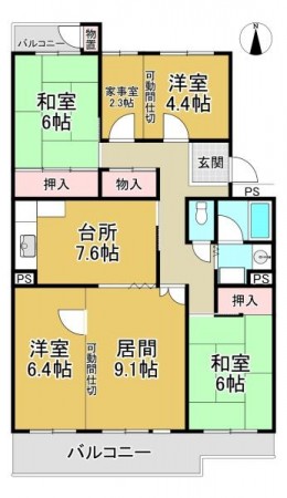 南向きバルコニーに付、陽当たり良好!広々4LDKの間取り!