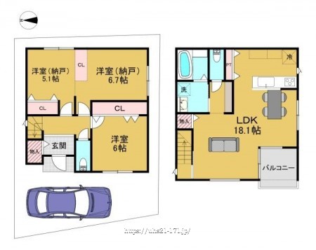 ※建築条件土地の情報内に掲載されている、建物プラン例は、土地購入者の設定プランの参考の一例であって、プランの採用可否は任意です。