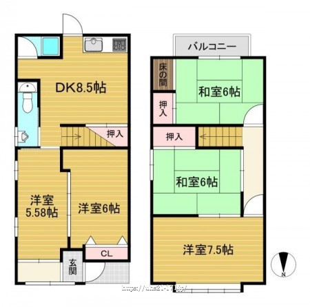 階数 区分 広さ 1F DK 8.5帖 1F 洋 6.0帖 1F 洋 5.6帖 2F 洋 7.5帖 2F 和 6.0帖 2F 和 6.0帖 - 駐車場