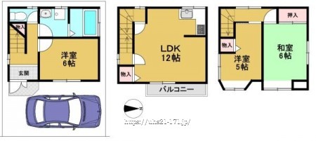 階数 区分 広さ 1F 洋 6.0帖 2F LDK 12.0帖 2F 洋 5.0帖 2F 和 6.0帖 - 駐車場