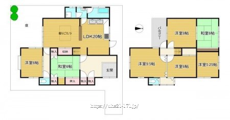 階数 区分 広さ 1F LDK 20.0帖 1F 和 6.0帖 1F 洋 6.0帖 2F 洋 9.8帖 2F 洋 8.0帖 2F 和 6.8帖 2F 洋 6.0帖 2F 洋 5.3帖 - 駐車場