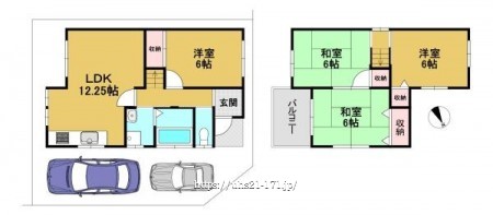 階数 区分 広さ 1F LDK 12.3帖 1F 洋 6.0帖 2F 洋 6.0帖 2F 和 6.0帖 2F 和 6.0帖 - 駐車場