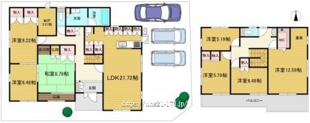 階数 区分 広さ 1F LDK 21.7帖 1F 和 8.8帖 1F 洋 8.2帖 1F 洋 6.5帖 1F S 3.2帖 2F 洋 12.6帖 2F 洋 6.5帖 2F 洋 5.8帖 2F 洋 5.2帖 - 駐車場