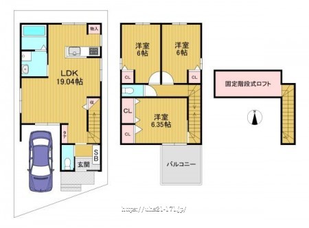 (1F:44.96平米、2F:40.98平米)