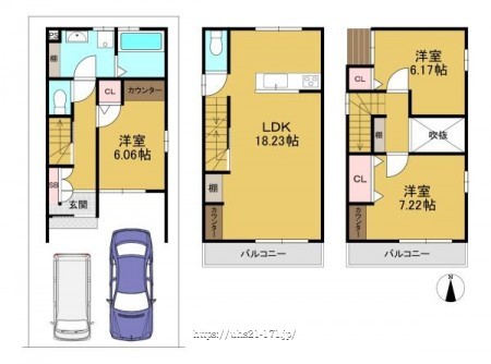 (1F;27.42平米、2F:33.32平米、3F:29.2平米)