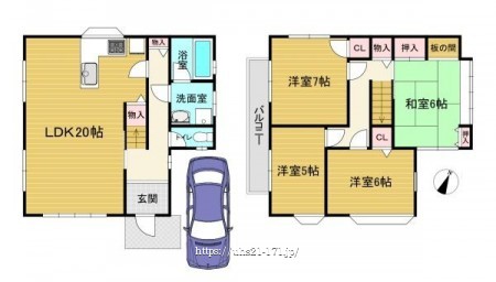 階数 区分 広さ 1F LDK 20.0帖 2F 洋 7.5帖 2F 洋 6.0帖 2F 和 6.0帖 2F 洋 5.0帖 - 駐車場