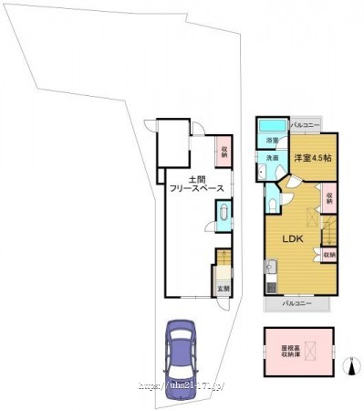 階数 区分 広さ 2F 洋 4.5帖 - 駐車場