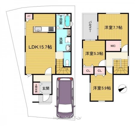 延床面積:85.90平米(1F:44.05平米、2F:41.85平米)