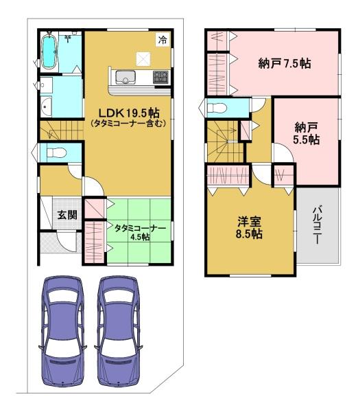 階数 区分 広さ 1F LDK 19.5帖 2F 洋 8.5帖 2F S 7.5帖 2F S 5.5帖 - 駐車場