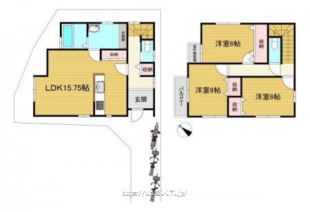 階数 区分 広さ 1F LDK 15.8帖 2F 洋 6.0帖 2F 洋 6.0帖 2F 洋 6.0帖 - 駐車場