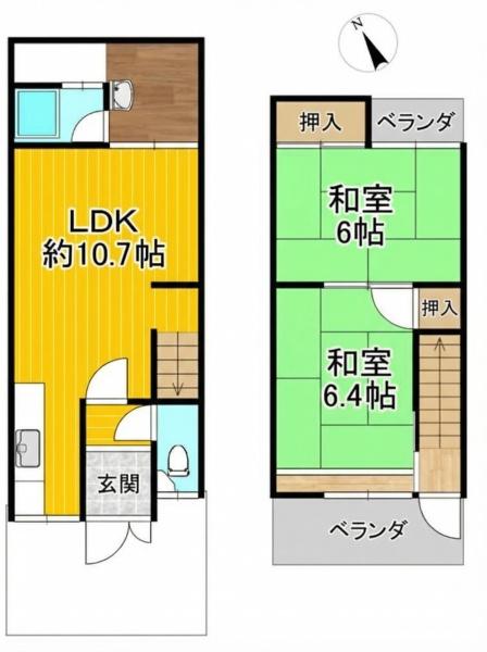階数 区分 広さ 1F LDK 10.7帖 2F 和 6.4帖 2F 和 6.0帖 - 駐車場