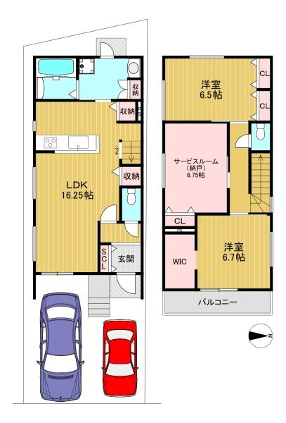階数 区分 広さ 1F LDK 16.3帖 2F S 6.8帖 2F 洋 6.7帖 2F 洋 6.5帖 - 駐車場