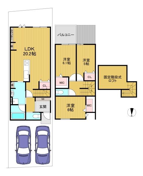 階数 区分 広さ 1F LDK 20.2帖 2F 洋 6.1帖 2F 洋 6.0帖 2F 和 5.0帖 - 駐車場