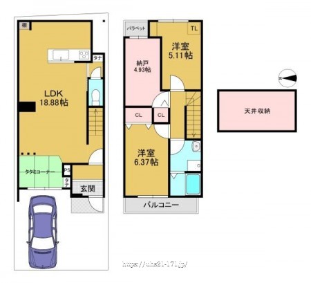 ※建築条件土地の情報内に掲載されている、建物プラン例は、土地購入者の設定プランの参考の一例であって、プランの採用可否は任意です。