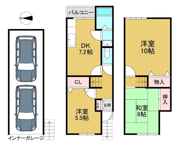 階数 区分 広さ 2F DK 7.2帖 2F 洋 5.5帖 3F 洋 10.0帖 2F 和 6.0帖 - リフォーム