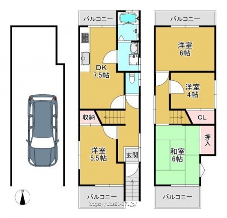 階数 区分 広さ 2F DK 7.5帖 2F 洋 5.5帖 3F 和 6.0帖 3F 洋 6.0帖 3F 洋 4.0帖 - リフォーム