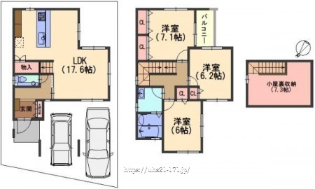 階数 区分 広さ 1F LDK 17.6帖 2F 洋 7.1帖 2F 洋 6.2帖 2F 洋 6.0帖 - 駐車場