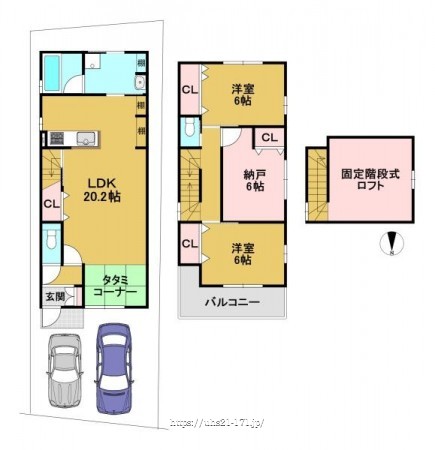 階数 区分 広さ 1F LDK 20.2帖 2F 洋 6.0帖 2F 洋 6.0帖 2F S 6.0帖 - 駐車場