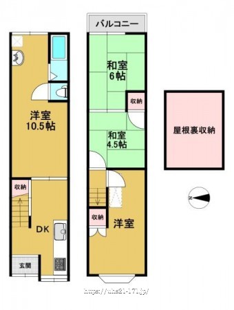 階数 区分 広さ 1F 洋 10.5帖 2F 和 6.0帖 2F 和 4.5帖 - 駐車場