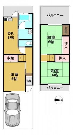 階数 区分 広さ 1F DK 6.0帖 1F 洋 6.0帖 2F 和 6.0帖 2F 和 6.0帖 - 駐車場