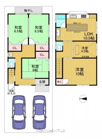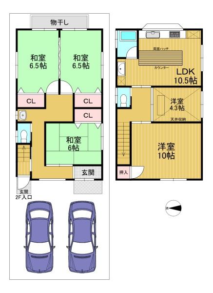 階数 区分 広さ 1F 和 6.5帖 1F 和 6.5帖 1F 和 6.0帖 2F LDK 10.0帖 2F 洋 10.0帖 2F 洋 4.5帖 - 駐車場