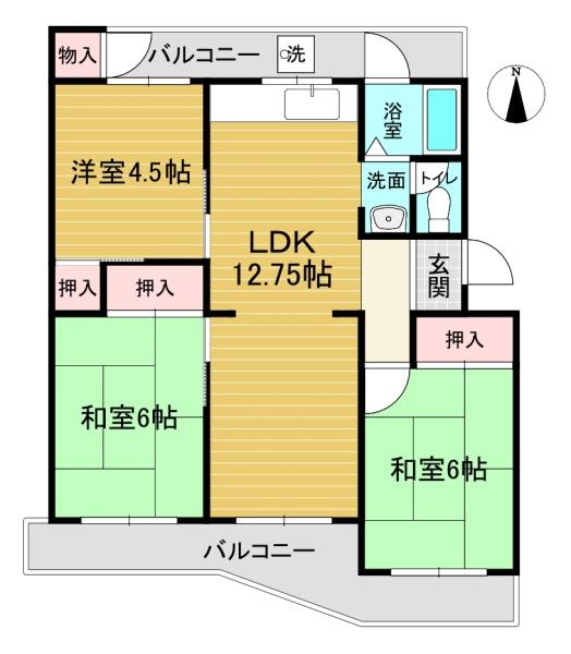 マンション2階部分!南北両面バルコニーで陽当り・通風良好!
