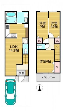 (1F:38.88平米 2F:34.02平米)