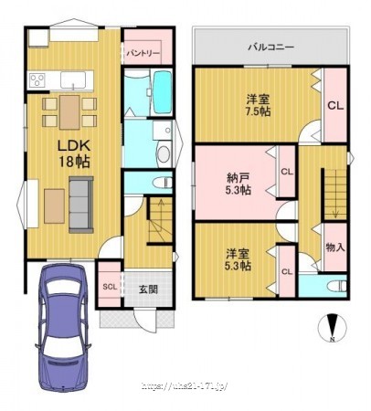 ※建築条件土地の情報内に掲載されている、建物プラン例は、土地購入者の設定プランの参考の一例であって、プランの採用可否は任意です。