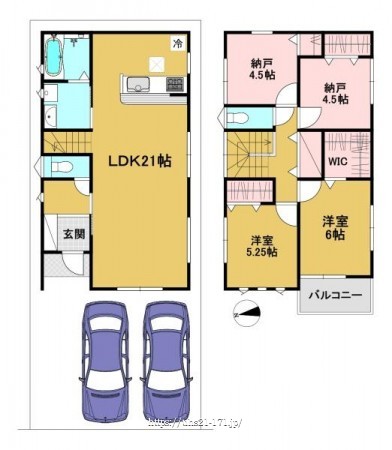 階数 区分 広さ 1F LDK 21.0帖 2F 洋 6.0帖 2F 洋 5.3帖 2F S 4.5帖 2F S 4.5帖 - 駐車場