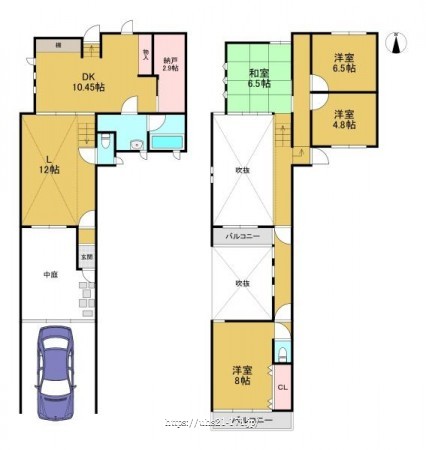 階数 区分 広さ 1F LDK 22.5帖 2F 洋 8.0帖 2F 洋 6.5帖 2F 洋 4.8帖 2F 和 6.5帖 2F S 2.9帖 - 駐車場
