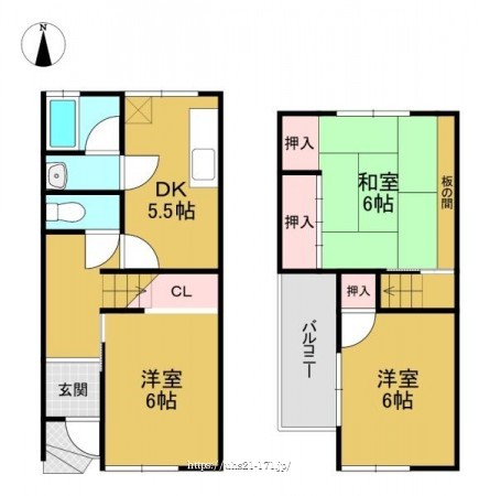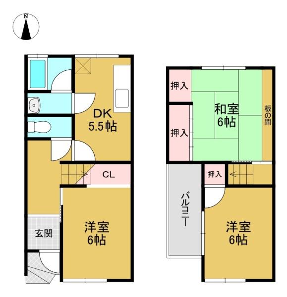 階数 区分 広さ 1F DK 5.5帖 1F 洋 6.0帖 2F 洋 6.0帖 2F 和 6.0帖 - リフォーム