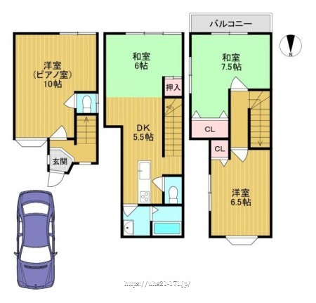 階数 区分 広さ 1F 洋 10.0帖 2F 和 6.0帖 2F DK 5.5帖 3F 和 7.5帖 3F 洋 6.5帖 - リフォーム